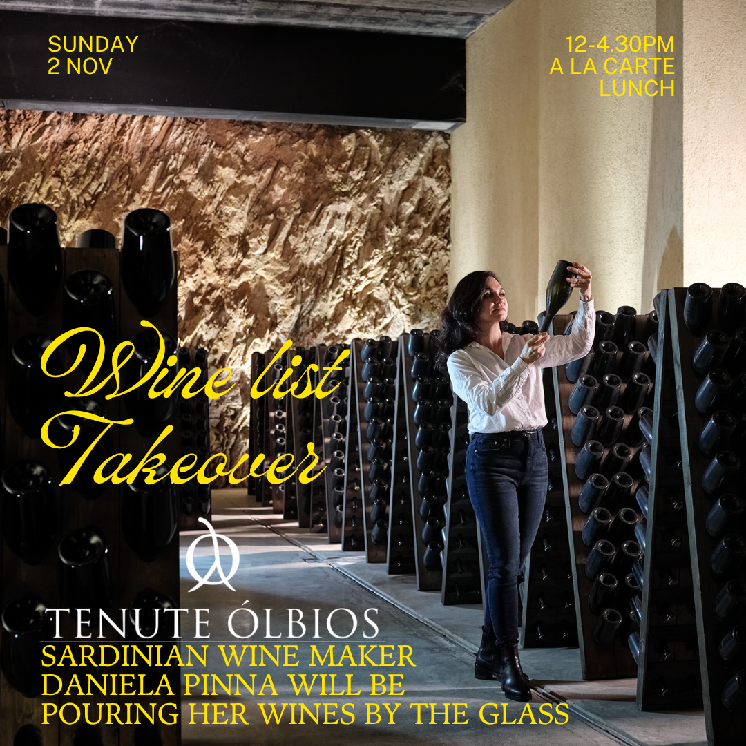 Sardinian wine maker Daniela Pinna from Tenute Ólbios will be pouring her wines by the glass
